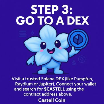 Visit a trusted Solana DEX (like Pumpfun, Raydium or Jupiter). Connect your wallet and search for $CASTELL using the contract address above.